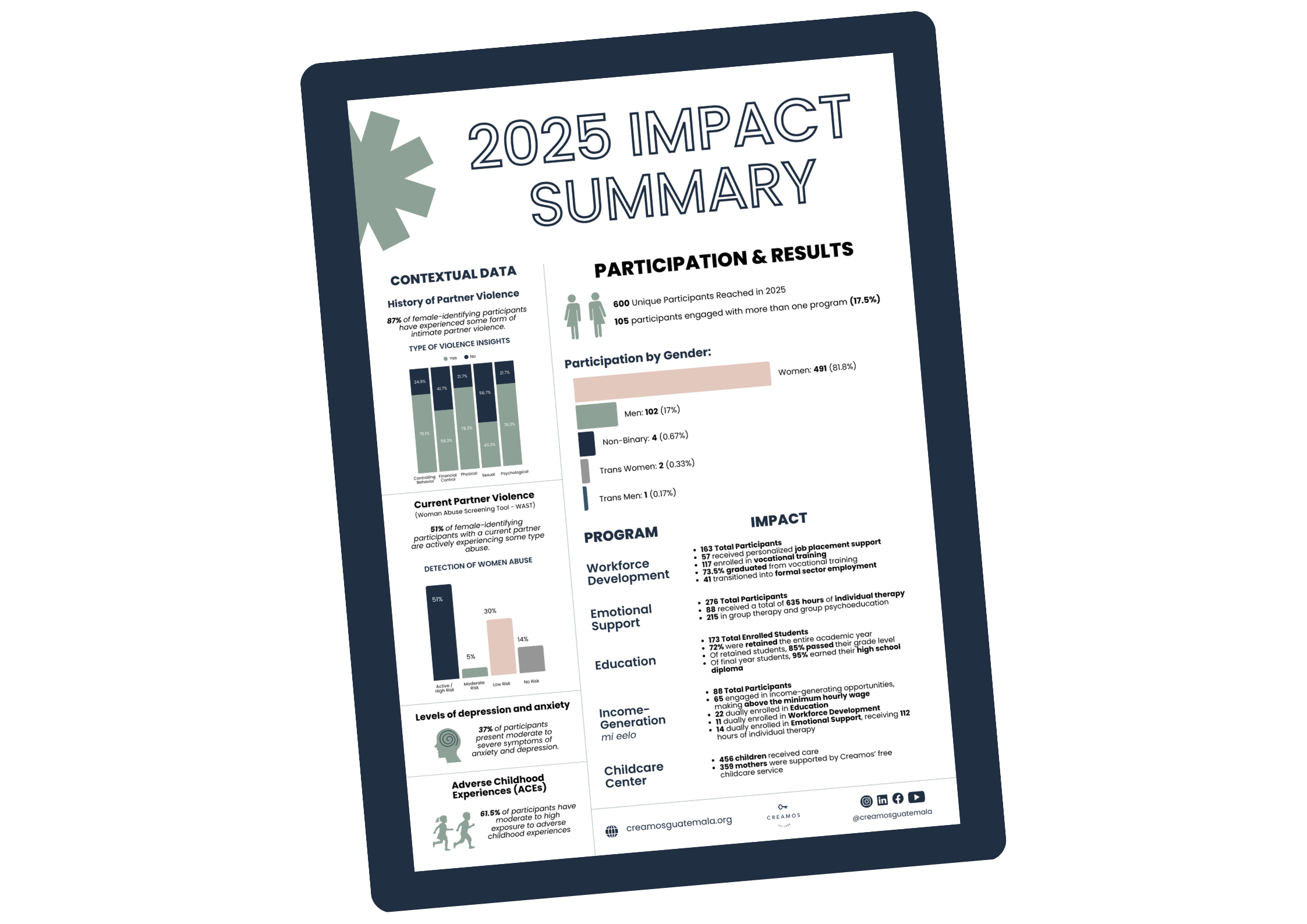 Por último, nos complace anunciar una nueva alianza con Together Women Rise para apoyar el Programa de Apoyo Emocional de Creamos.